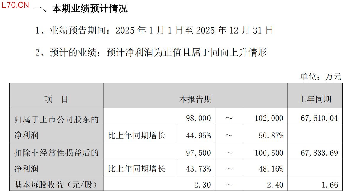 业绩方面,广合科技预计2025年归母净利润同比增长44.95%~50.87%至9.8亿元~10.2亿元。