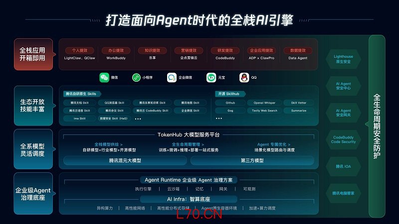 3月27日,2026腾讯云城市峰会首站落地上海,在To B业务实现全年规模化盈利的背景下,腾讯云公布2026年AI演进全新路线图。本次峰会中,腾讯云首次发布覆盖基础设施、模型、生态到应用全链路的Agent产品全景图,完成MaaS平台向TokenHub的升级,推出企业级Agent治理方案并宣布底层平台Cube全面开源,持续夯实AI Agent时代的全栈工程能力。同时,腾讯开放融合自研Skills、开源SkillHub及微信、企微、元宝等生态的丰富技能体系,展现AI应用场景的独特优势,还与上海普陀区政府及十余家企业达成合作,推动Agent在多行业快速落地。